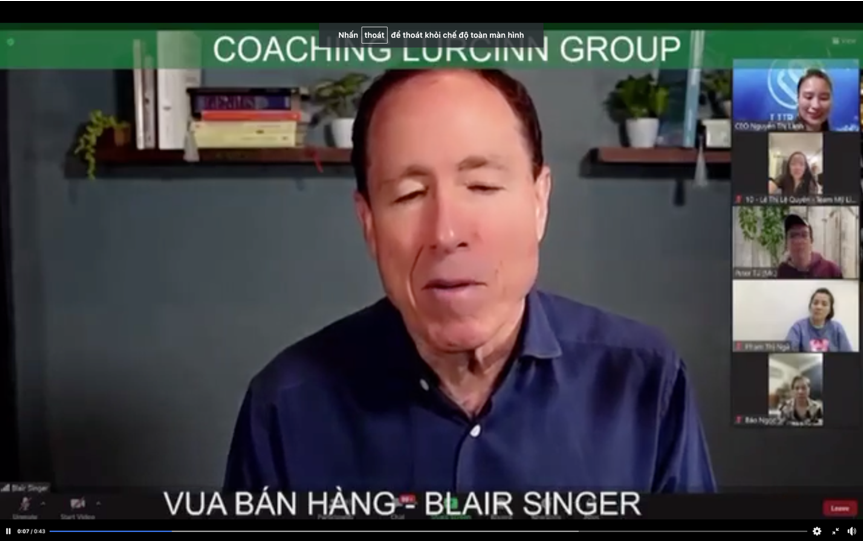 [Độc quyền] Coaching Online Bí quyết khai phá sức mạnh bản thân cùng bậc thầy bán hàng Blair Singer tại Lurcinn Group